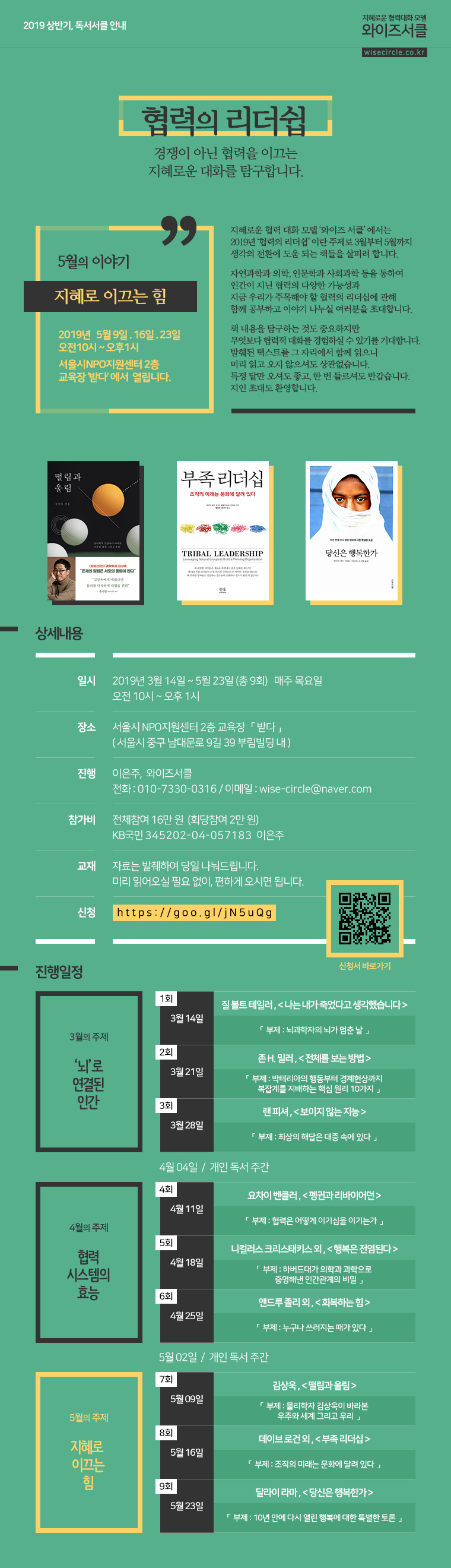 2019 상반기 독서서클 : 5월, 지혜로 이끄는 힘 (2019.3.14~5.23 / 총9회)