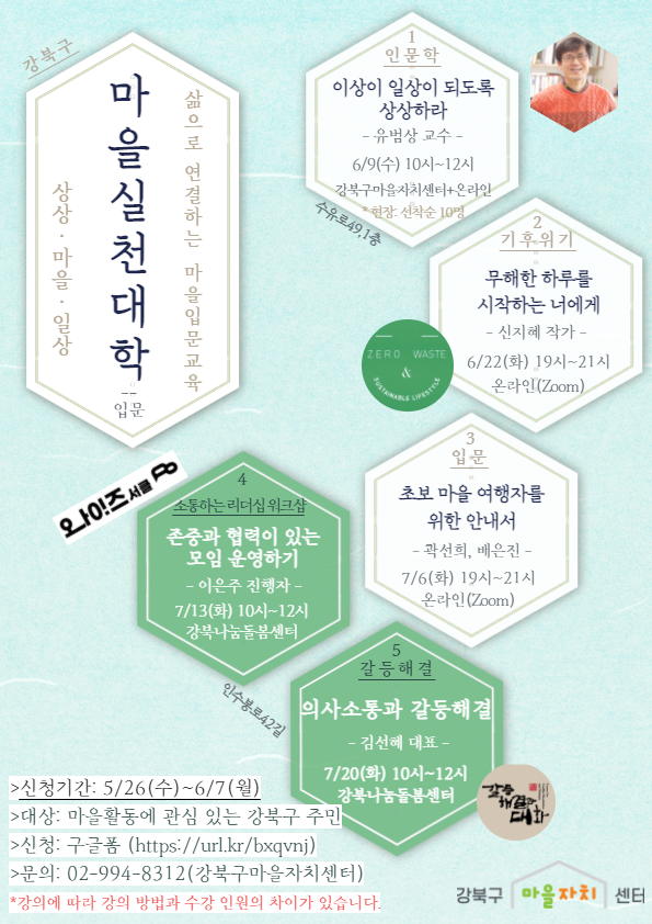 6/9(수) 10시~12시 강북구마을자치센터+온라인