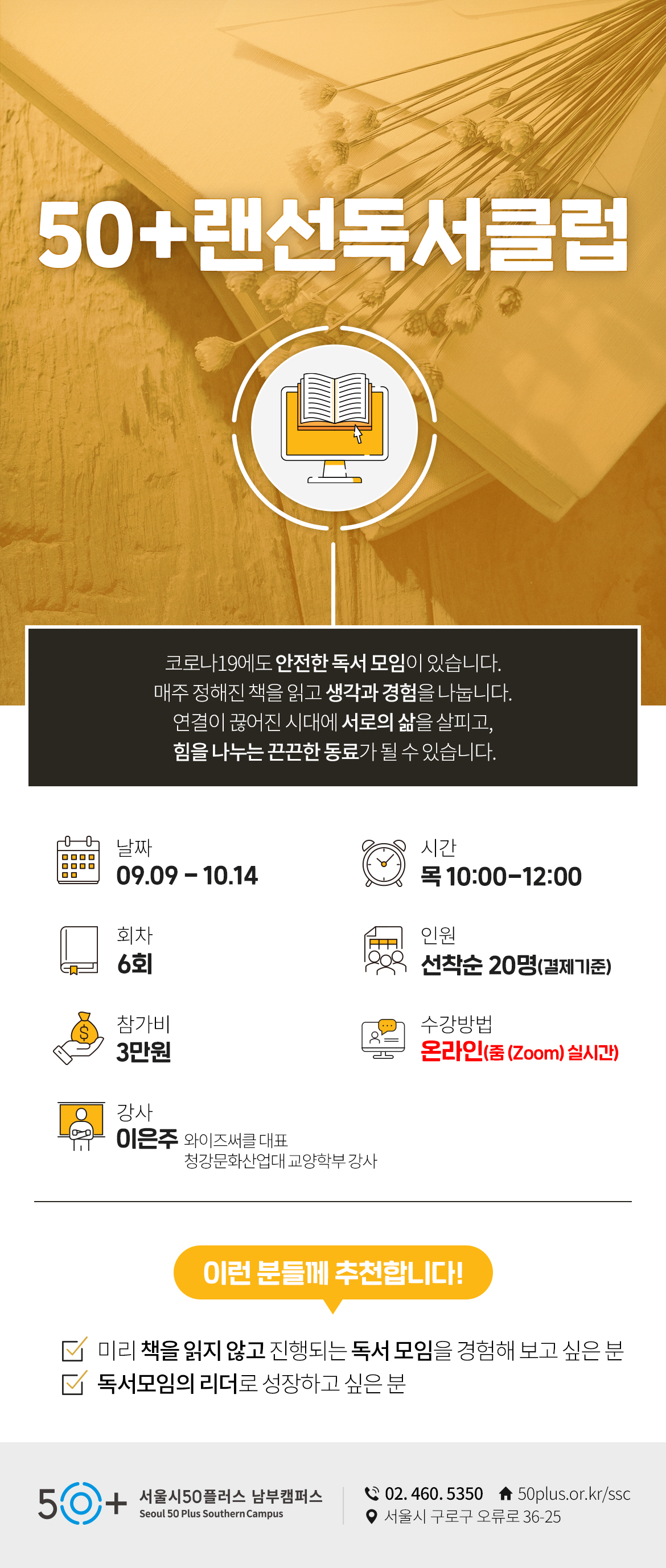 [서울50플러스재단] 50+랜선독서클럽 (9/9~10/14)