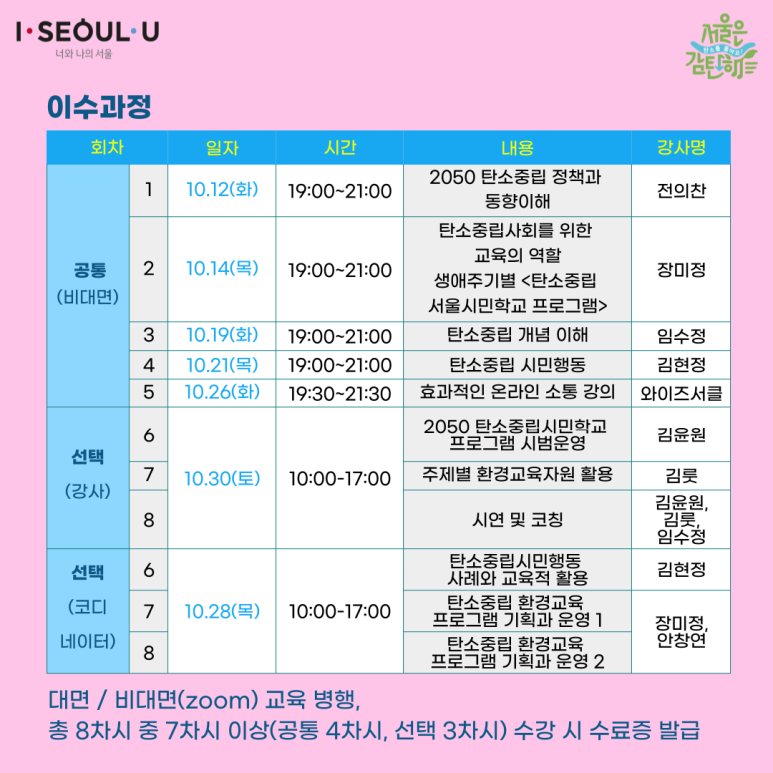 🔅<2050 탄소중립 서울시민학교> 양성과정 참가신청안내📢