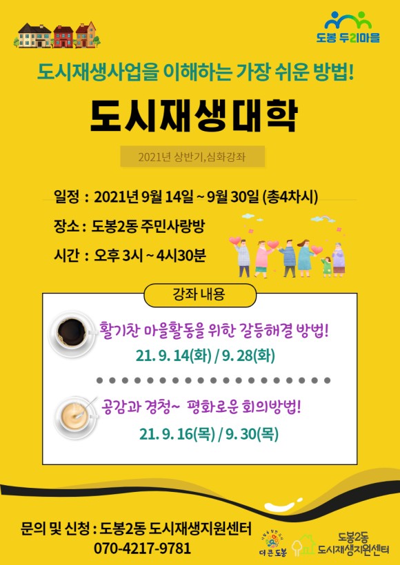 문의 및 신청 : 도봉2동 도시재생지원센터 (070-4217-9781)