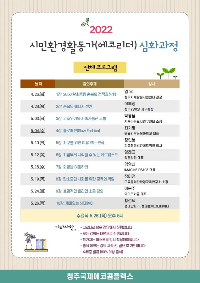 * 청주국제에코콤플렉스 에코리더협의회 에코리더 (1기~5기) 대상