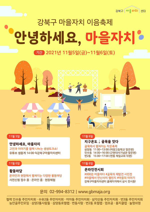 인수동 주민자치회·수유2동 주민자치회 미아동 주민자치회·삼각산동 주민자치회·번3동 주민자치회 능안골주민모임 삼양2통사람들 삼양동로컬랩·번동사랑·번2동 로컬랩·엄쏘공·몸지클럽·놀멍쉬멍