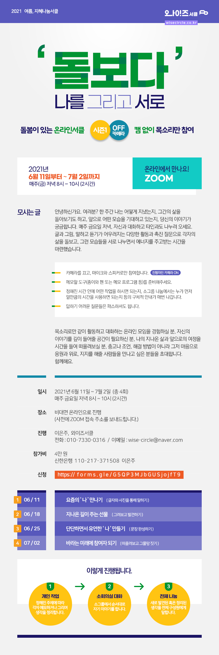 진행 : 이은주, 와이즈서클 전화: 010-7330-0316 / 이메일: wise-circle@naver.com