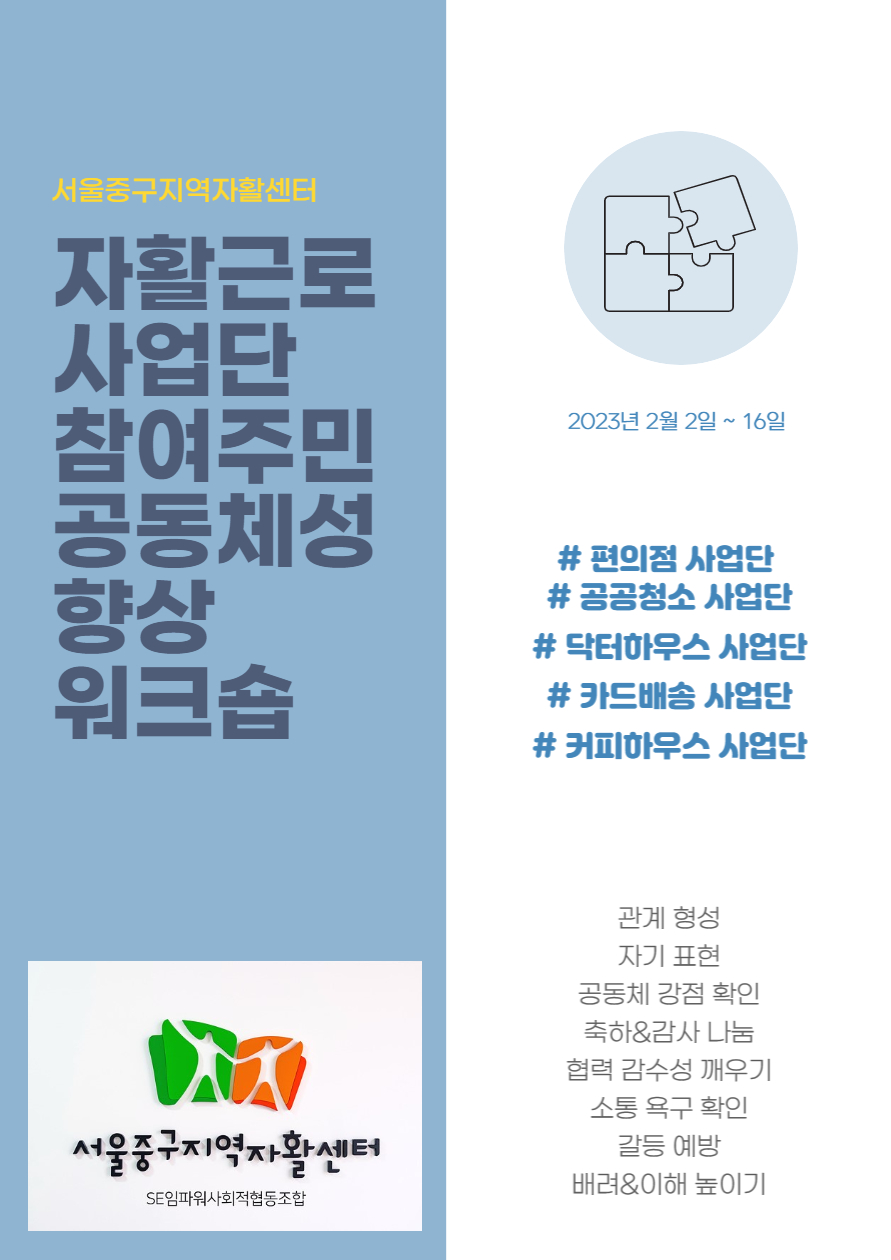 [서울중구지역자활센터] 자활근로사업단 참여주민 대상 워크숍