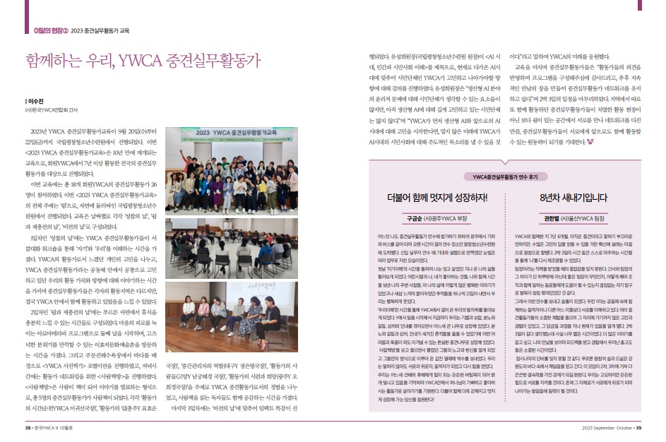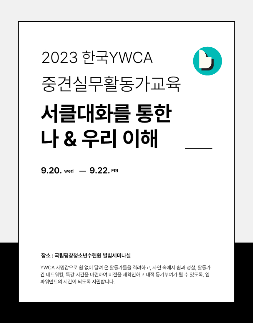 제목 : 한국YWCA 중견실무활동가교육 2023 성찰 워크숍 (9/20~22)