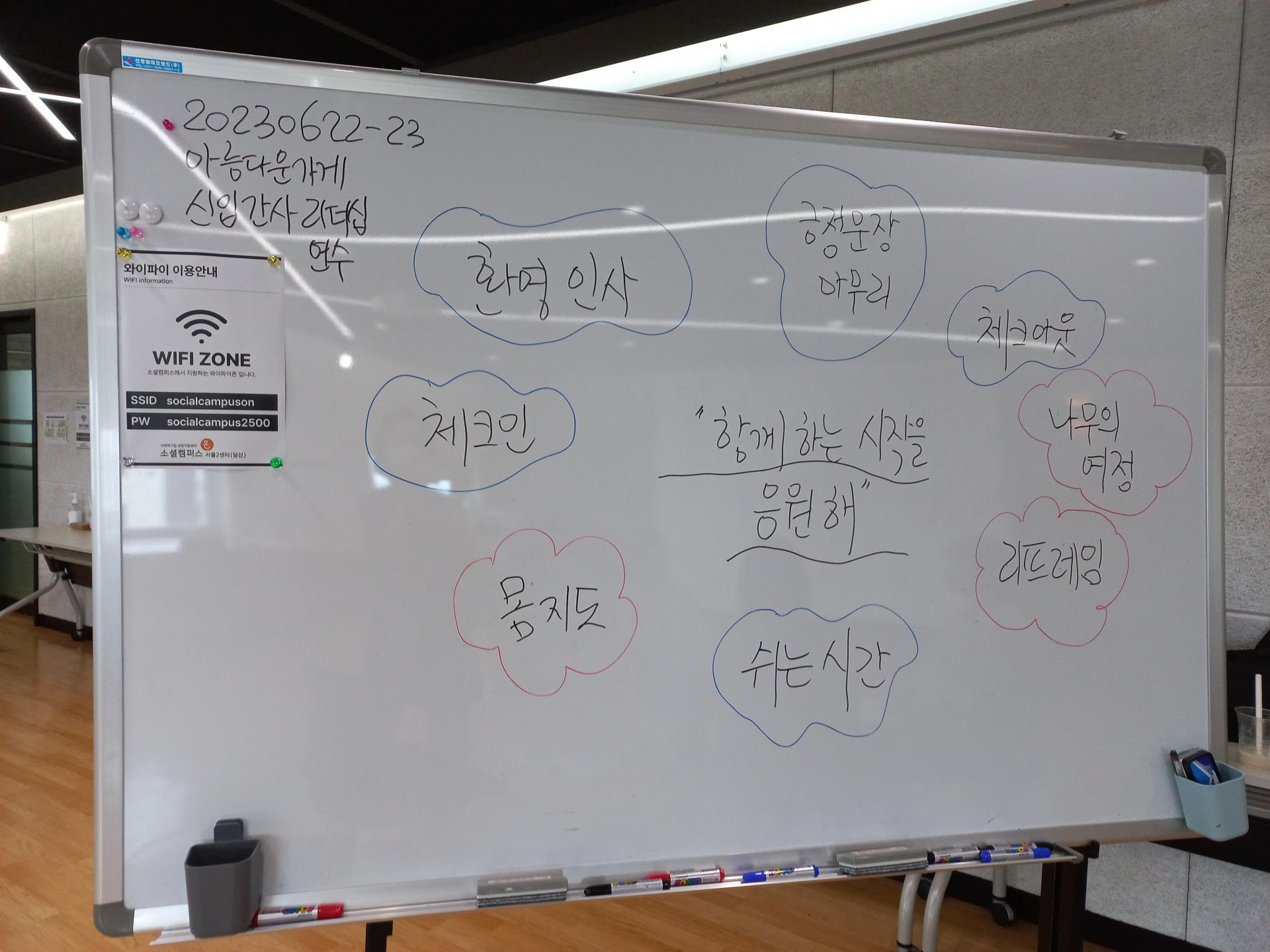 아름다운 일터에서 활동을 같이 시작하게 된 동료 여러분께 축하의 인사 드립니다! 앞으로 경험해 나갈 멋진 협업을 기대하며, 각자가 지닌 보물을 서로 확인하고 최상의 콜라보를 향한 토대 만들기 시간을 마련하였습니다. 안전하고 즐거운 실험 공간에서, 함께 펼치고자 하는 중요 가치와 액션을 가시화하고 동력을 꾸려보는 과정까지 더불어 가볍게 경험해보아요.