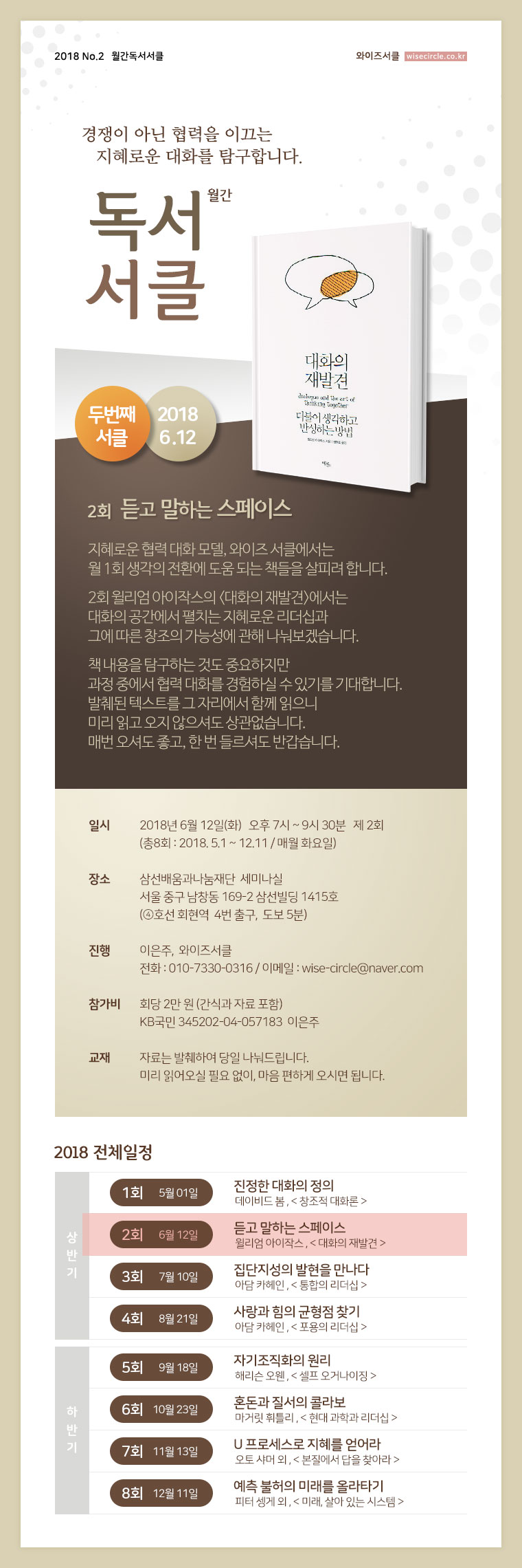 2018 월간 독서서클 : 2회, 듣고 말하는 스페이스 (2018.6.12)
