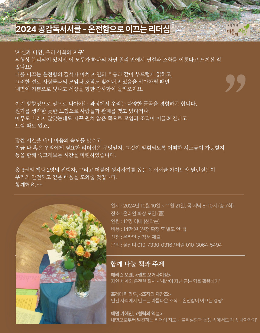 [마음의씨앗] 공감독서서클 '온전함으로이끄는리더십' (10/10~)