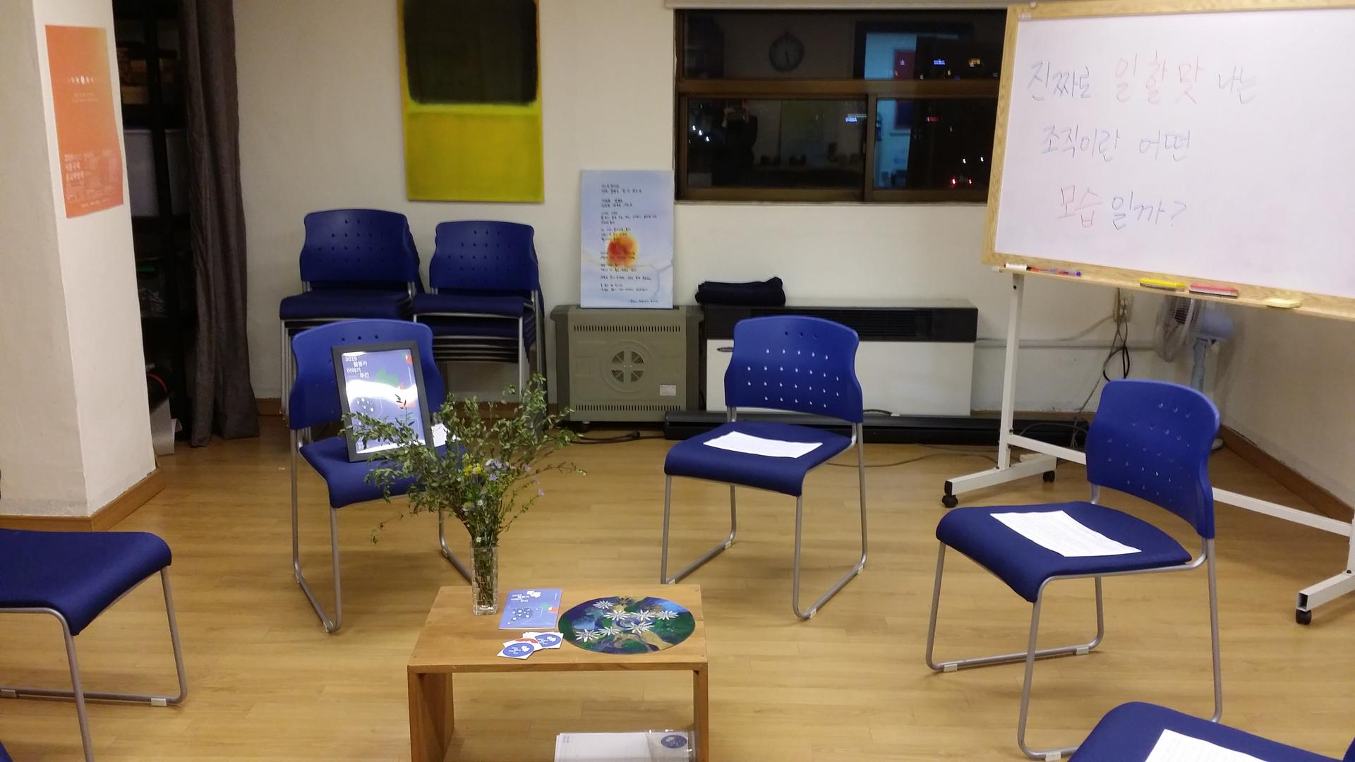 월요일 저녁, 퇴근 후 바쁘게 달려온 4명의 활동가와 나를 포함하여 총 5명이 의자를 갖고 원으로 둘러앉았다. 먼저 서로 간에 동의를 구한 것은 오늘 대화의 방식이었다. 어떤 순서로 이야기할지, 각자가 자기 생각을 이야기할 때 어떤 행동으로써 서로에게 존중을 보여줄지를 결정하였다.