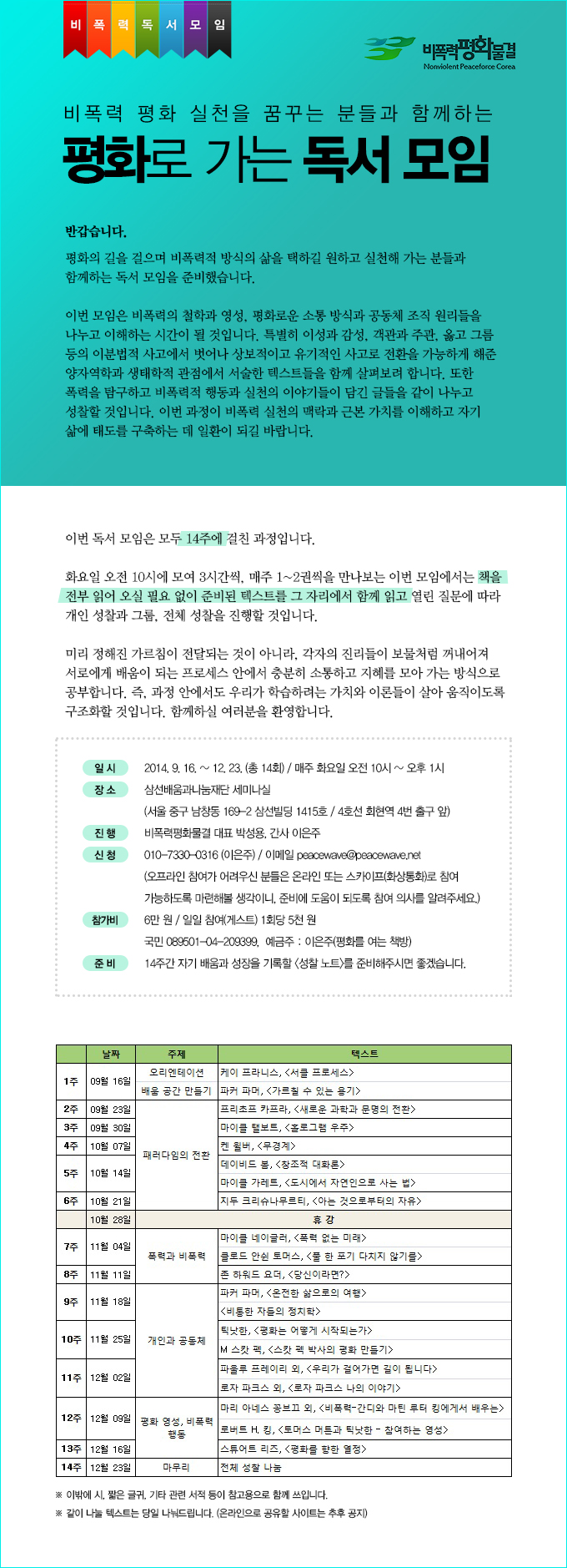 [평화독서서클] 비폭력 평화 실천을 위한 (14회차)