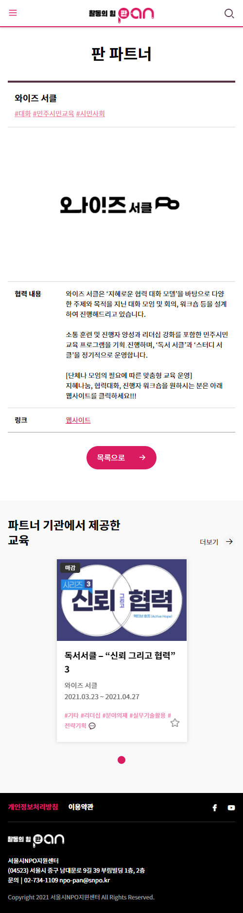와이즈서클 '서울시 활동가 학습 플랫폼 PAN'의 파트너 기관으로 (2021.03~)