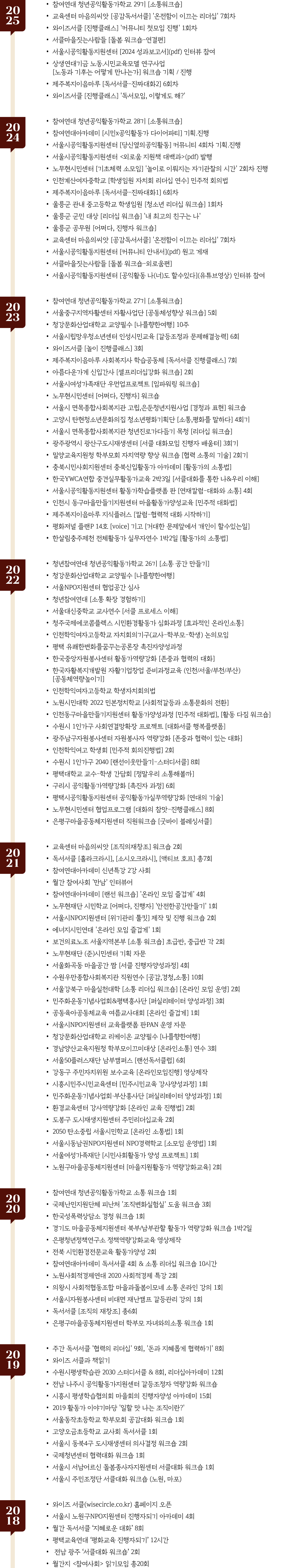[ 대화 서클 | 리더십 워크숍 | 진행자 클래스 ] - 2015 ~