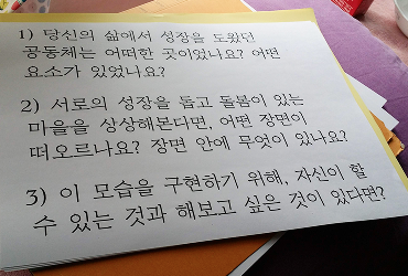 협력적 과정으로 지혜를 도출해 가는 서클 대화에서 진행자는 사고를 촉진시키고 다양성을 끌어내려는 의도로 열린 질문을 던집니다. 그리고 서로가 다른 길로 가는 듯할 때 의미를 읽어주어 연결 다리를 놓습니다.